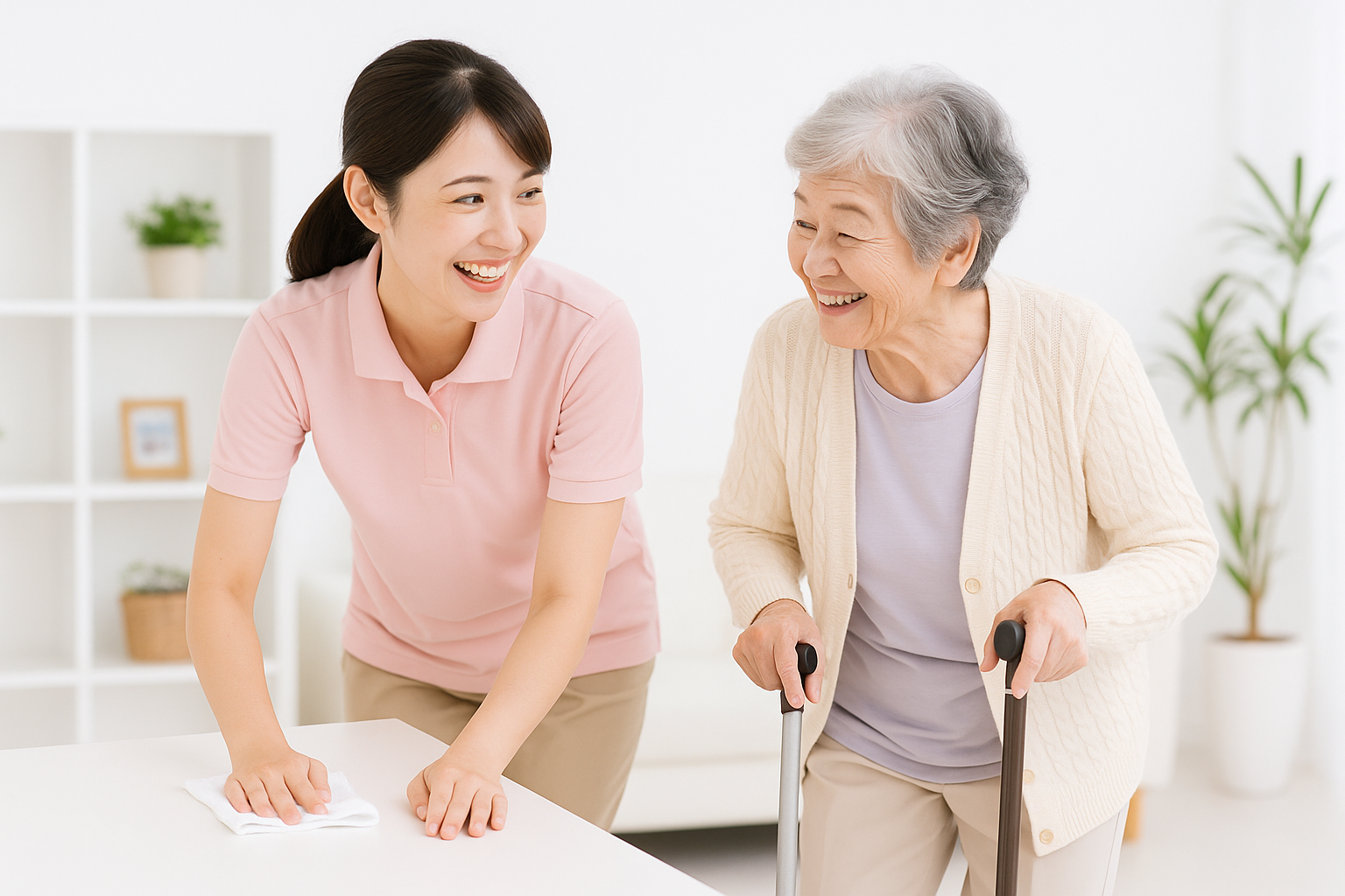 初日は同行訪問から始めます。利用者様との距離感、声かけ、段取りを一緒に確認し、あなたの不安が減るペースで独り立ちを進めます。